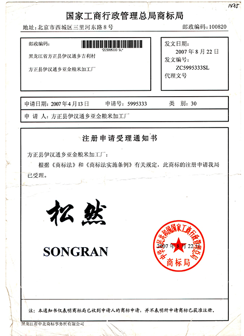 公司介紹 領(lǐng)導(dǎo)致辭 資質(zhì)榮譽(yù) 經(jīng)營(yíng)模式 品牌文化 您現(xiàn)在的位置:網(wǎng)站首頁(yè) > 松然米業(yè) > 資質(zhì)榮譽(yù) 松然商標(biāo)申請(qǐng)書 松然商標(biāo) 松然富硒檢測(cè)1 松然富硒檢測(cè)3 商標(biāo)轉(zhuǎn)讓證書 商標(biāo)注冊(cè)證 商標(biāo)注冊(cè)證 共15條記錄當(dāng)前為第2頁(yè)/共2頁(yè) 上一頁(yè)12下一頁(yè)